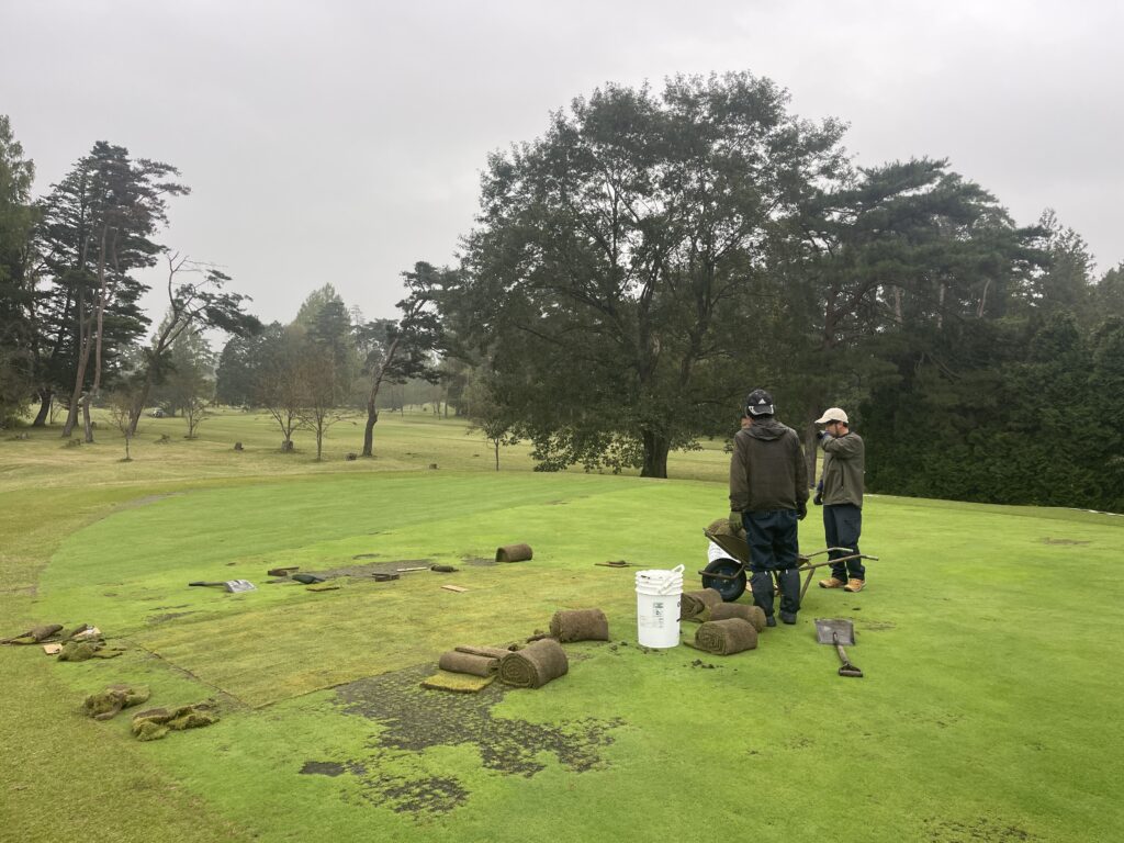 播種した芝が発芽し、芝の張替えも順次行っております。